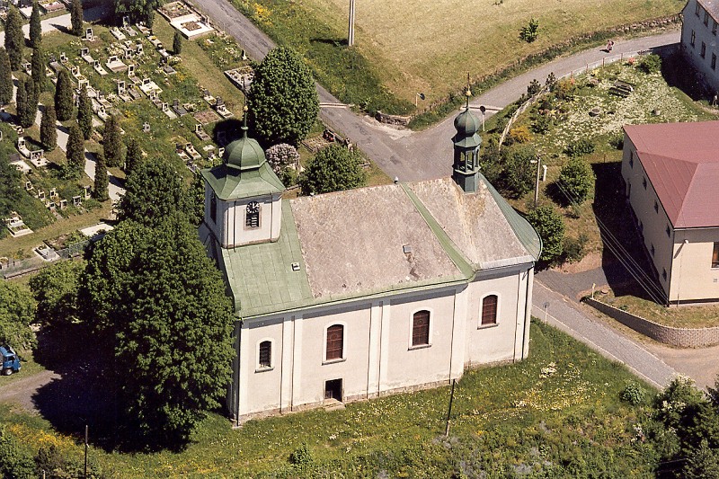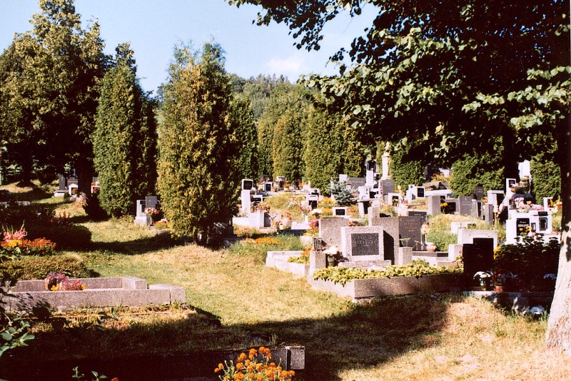 Z doby vzniku starého kostela pochází také dnes již neužívaný hřbitov, ohraničený nízkou pískovcovou zdí s osmibokou barokní kaplí z 2. poloviny 18. století a s oltářem sv. Kříže od Antonína Suchardy. Pro nový hřbitov poskytl pozemek továrník František Gerl a roku 1901 byl otevřen.