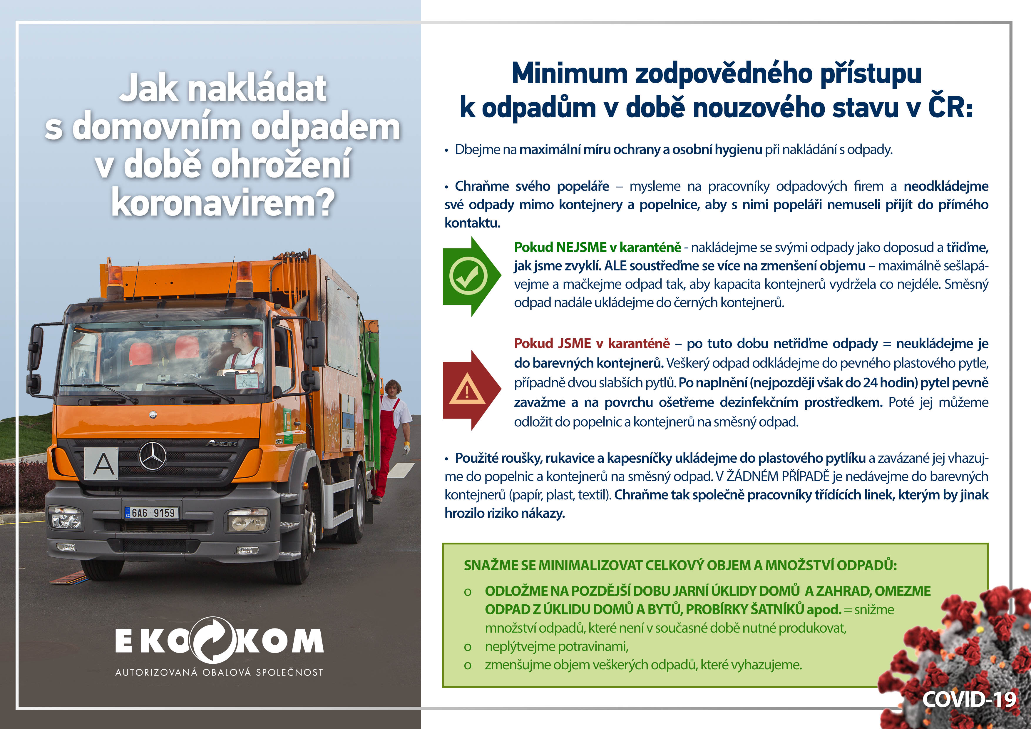 Na přiložených letácích najdete, jak správně a bezpečně nakládat s odpadem v této "koronavirové" době.